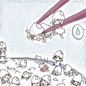 kouda tomohiro, terumo masumi, seka x seka, translation request, bikini, pink hair, purple eyes, swimsuit