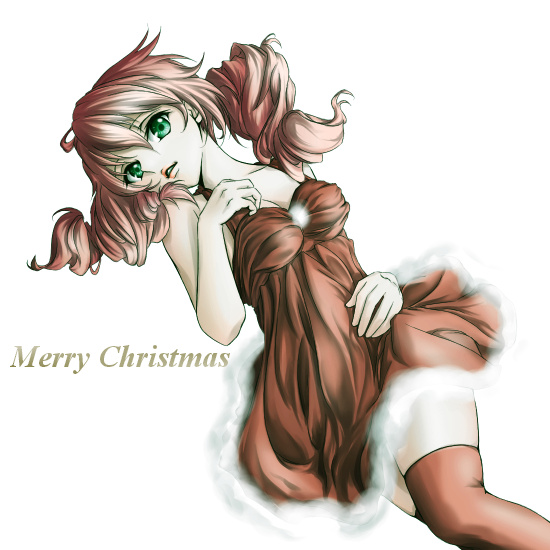 00schristmasdressdrill hairgreen eyeslipsticklyingmakeuppink hairshort dresssolothighhighstwintails