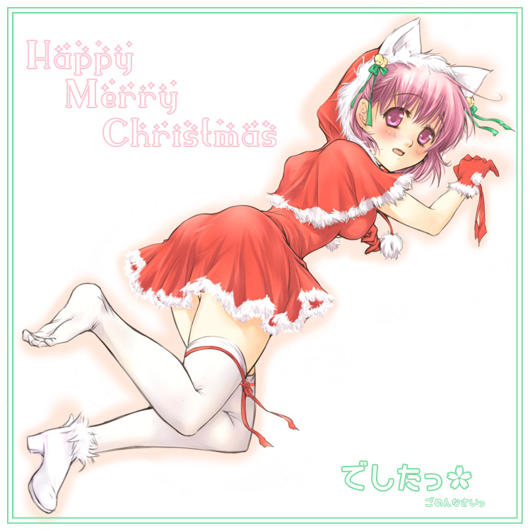 animal earsanimal hoodcat earscat hoodfeetgloveshoodpink eyespink hairsanta costumeshoesshort hairsingle shoesolothighhighs