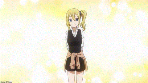 1girlblack skirtblack vestblonde hairblue eyesblue nail polishblue nailsblue scrunchieblushbreastsbrown cardigancardigancardigan around waistclothes around waistcollared shirtdot nosefemale focushair ornamenthair scrunchiejewelrylong hairlong sleeveslooking at viewermedium breastsminiskirtnail polishnecklaceopen mouthpleated skirtschool uniformscrunchieshirtshirt under vestshuuchiin academy school uniformside ponytailskirtsmilesolosolo focusteethvestwhite shirt