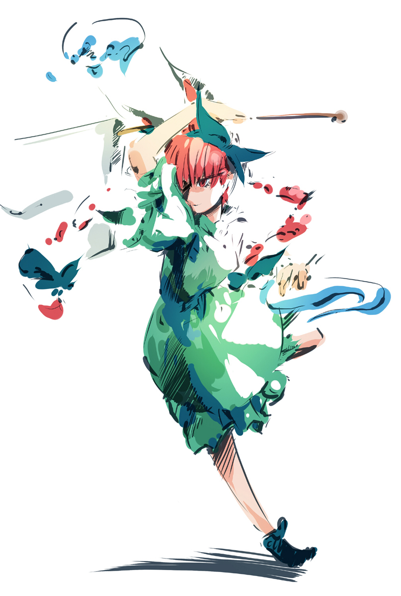 1girlanimal earsbraidcat earscat girlfemale focusfull bodyhair ribbonred eyesred hairribbonsolostandingtwin braidswhite background
