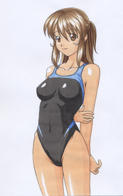 1girlbrown eyesbrown haircompetition swimsuitfemale focuslong hairone-piece swimsuitsoloswimsuit