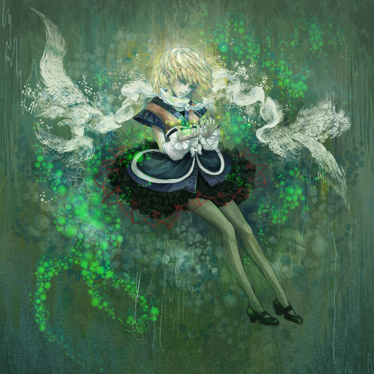 1girlblonde hairfemale focusgothic lolitagreen eyeslolita fashionmary janespantyhosescarfshoesshort hairsolotears