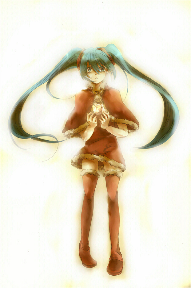 1girlaqua eyesaqua hairfemale focuslong hairpantiespantyshotsanta costumesolothighhighstwintailsunderwearvery long hair