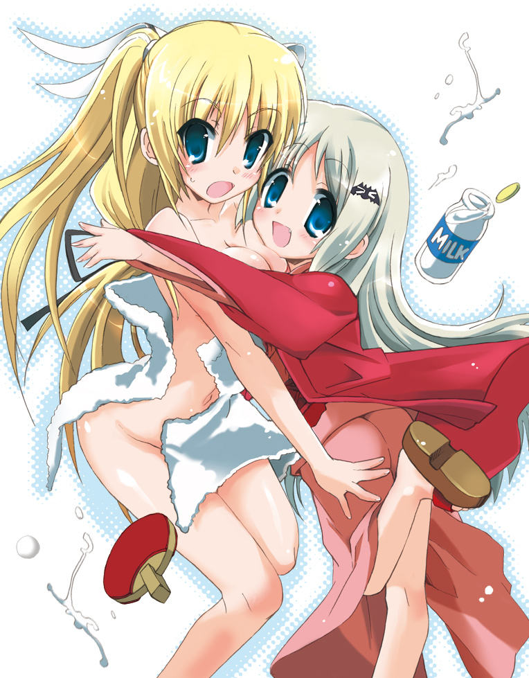 2girlsblonde hairblue eyeslong hairmilkmultiple girlsnudepaddletabletable tennistable tennis paddletowel