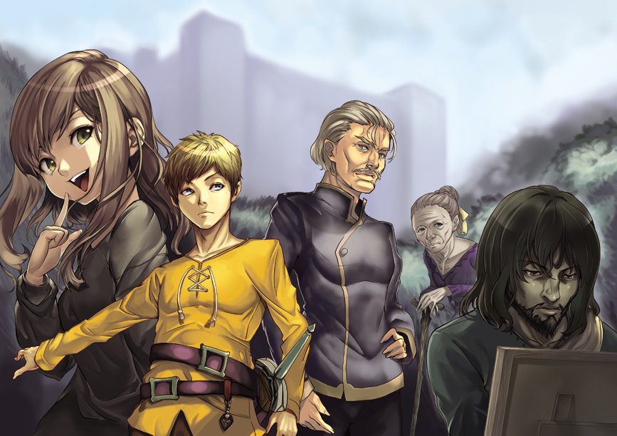 ivan (alien stage), till (alien stage), alien stage, commentary, english commentary, highres, 2boys, english text, green eyes, green shirt, grey hair, halo, hand on another's face, male focus, multiple boys, phainonsgirlie, pov, pov hands, shirt, short hair, sleeveless, sleeveless shirt, solo focus, speech bubble, very short hair