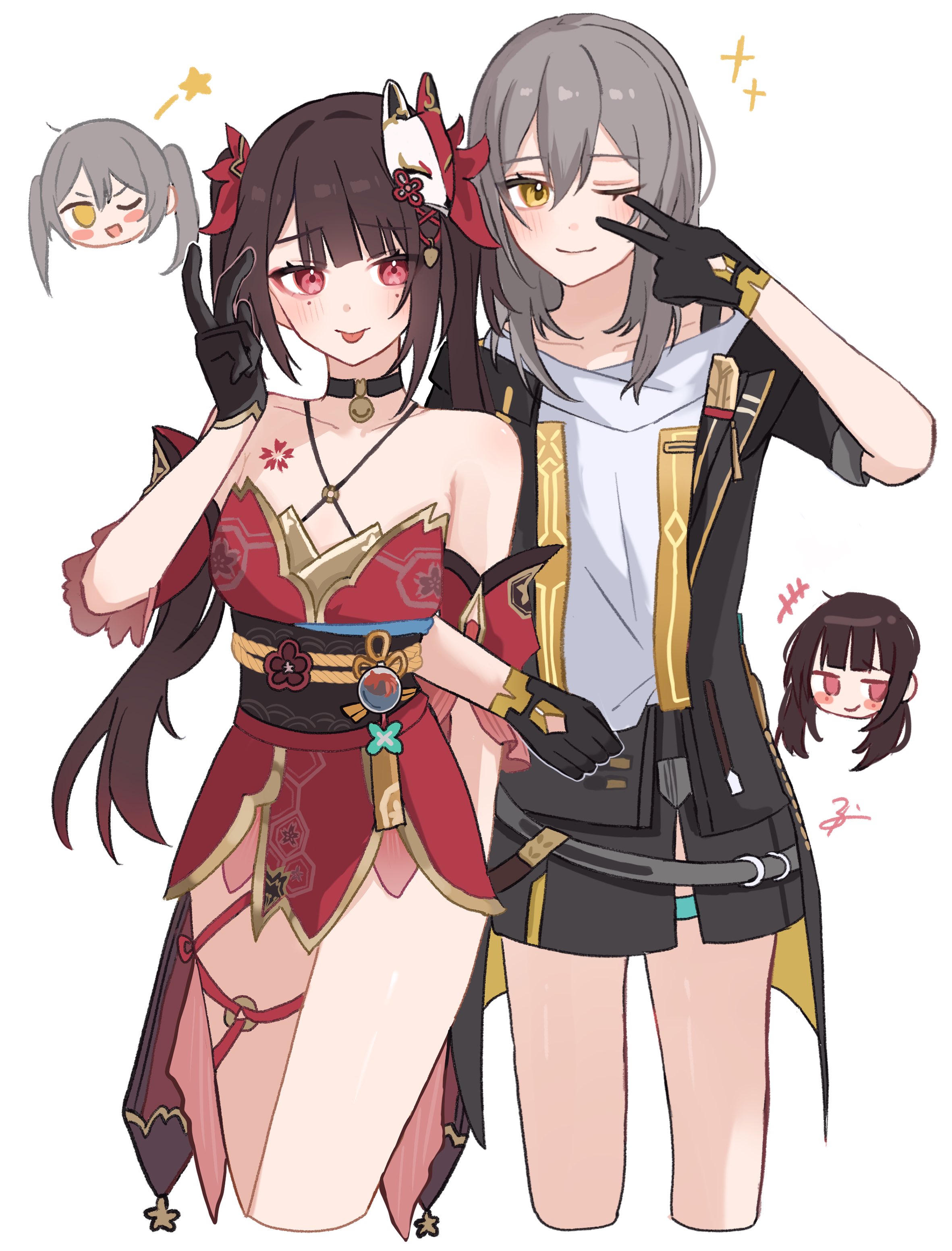 suubox, amate yuzuriha, shuji ito, gundam, gundam gquuuuuux, commentary request, highres, 1boy, 1girl, aqua shirt, blue background, blue hair, closed eyes, collared shirt, crescent, crescent earrings, earrings, hand on another's cheek, hand on another's face, jewelry, kiss, long sleeves, looking up, multicolored hair, red eyes, red hair, school uniform, shirt, short hair, simple background, sleeves rolled up, sweater, two-tone hair, upper body, white shirt, white sweater, wide-eyed