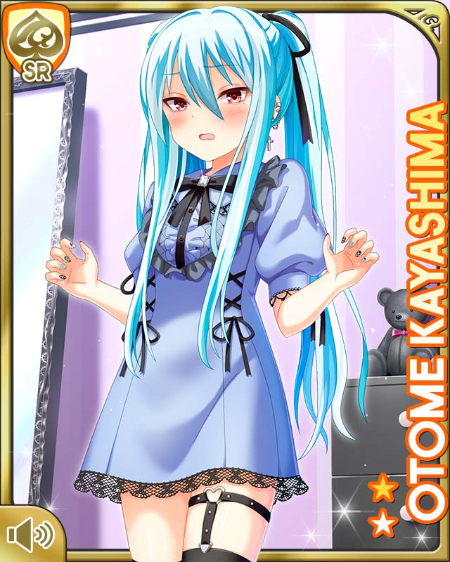 1girlbedroomblack bowblack ribbonblack thighhighsblue hairbowcardcharacter namedressflowerhair ribbonindoorslong hairnightopen mouthpurple dressred eyesribbonstandingthighhighsvery long hair