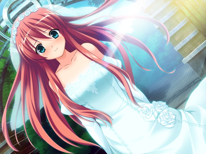 1girlblue eyesblushbridal veilbridedressdutch anglefemale focuslong hairred hairsoloveilwedding dress