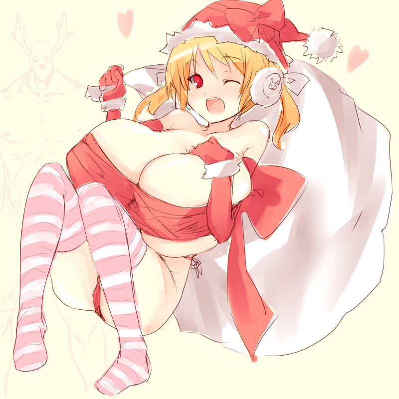 kneesocks (psg), panty & stocking with garterbelt, highres, 1girl, 7cstrain7, blue hair, breasts, colored skin, demon girl, green eyes, holding, holding scythe, holding weapon, long hair, looking at viewer, medium breasts, red skin, revealing clothes, scythe, solo, weapon