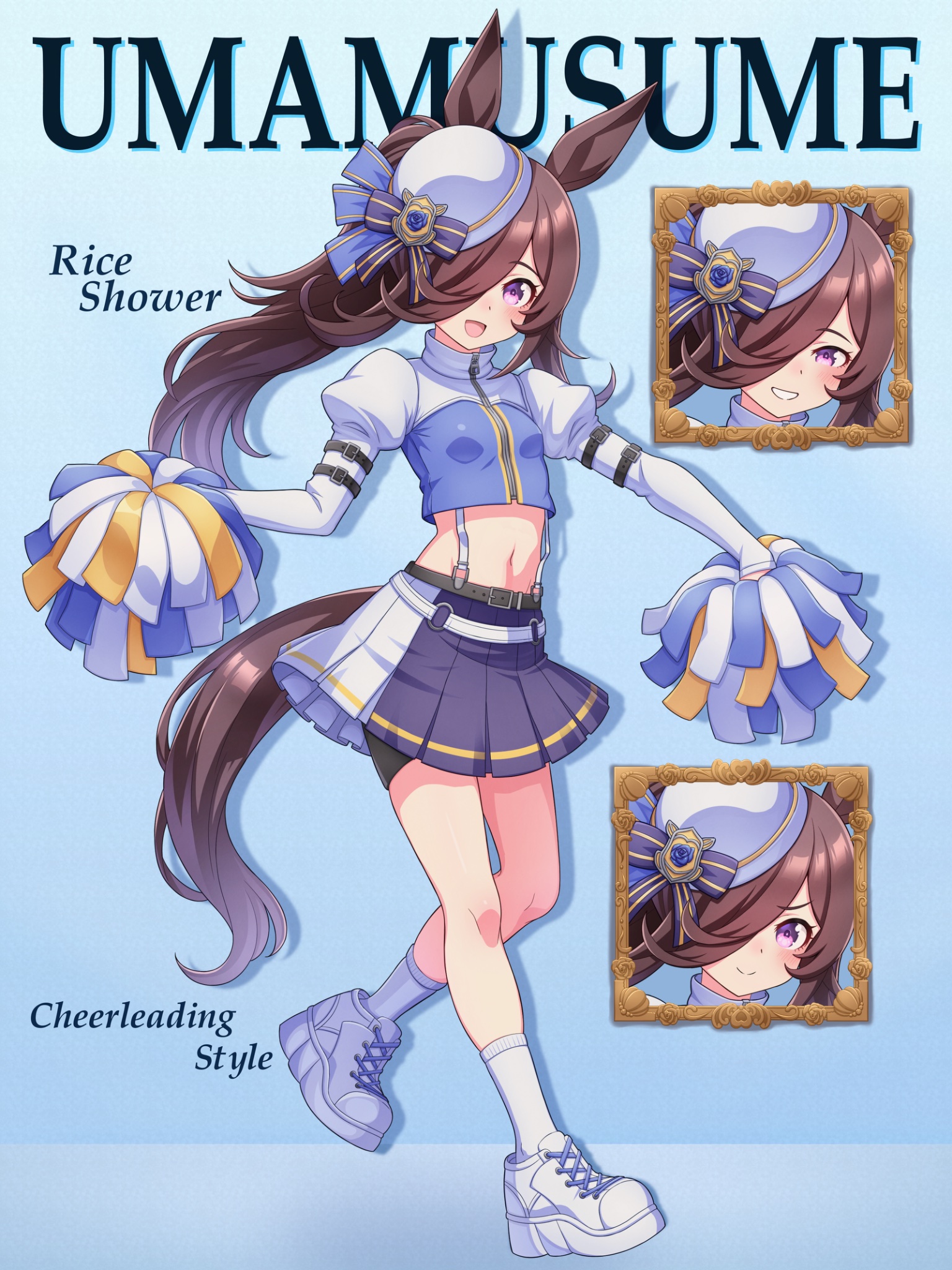 aki toshi, xp-tan, os-tan, 1girl, blue skirt, bow, brown hair, cuffs, female focus, long hair, skirt, sleeveless, solo