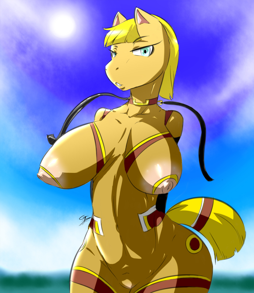 anthroareolabig breastsblonde hairbreastsdayequineerect nipplesfemaleFlag for Deletiongreen eyeshairhorsehuge breastslooking at viewernavelnipplesoutdoorspussyskimpysolo