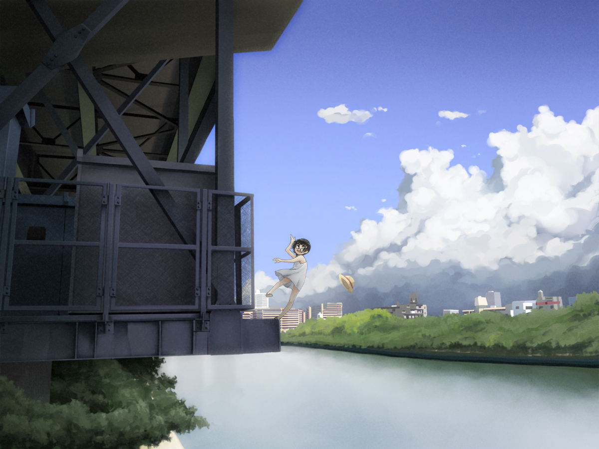 tororo (toriaezu), ryuuguu rena, higurashi no naku koro ni, eyebrows, uniform, 00s, 1girl, :d, arms up, beret, blue eyes, blush, dress, female focus, hat, head tilt, open mouth, orange hair, panties, pantyshot, puffy short sleeves, puffy sleeves, short sleeves, sitting, smile, solo, thighhighs, underwear, white dress, white panties