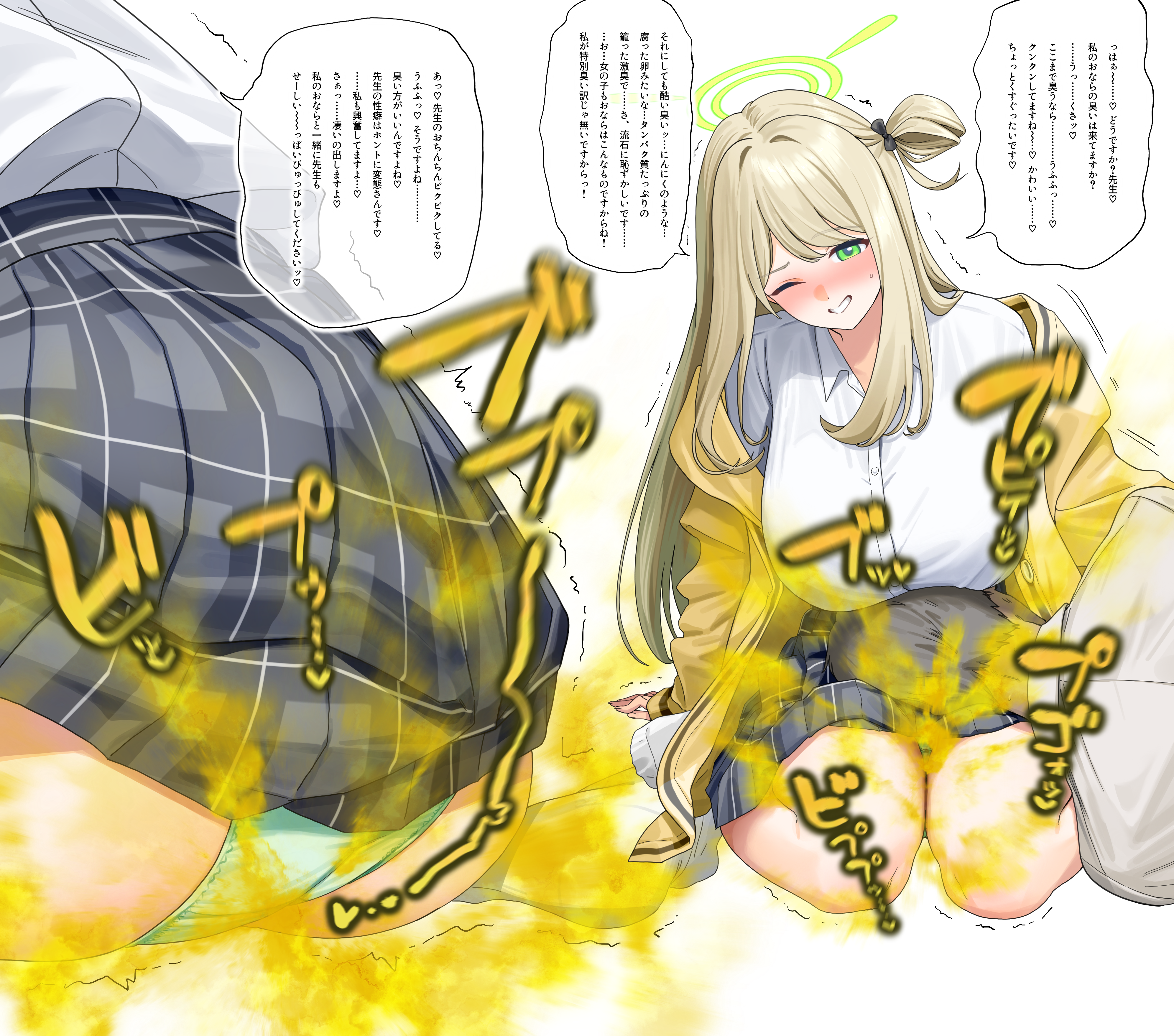 1boy1girlsassbig fartblonde hairblue archiveblushblushing femalebreast restbreastsbuttfartfart cloudfart fetishfartingFlag for Deletiongassygassy femalegreen eyesgreen pantiesgrinhalohead on lapindian stylelarge breastslegslong hairlying on personmale/femalemultiple viewsnonomi (blue archive)one eye closedpantiessensei (blue archive)side ponytailsittingskirtstink fumesstinkystinky fartthighstremblingwhite shirt