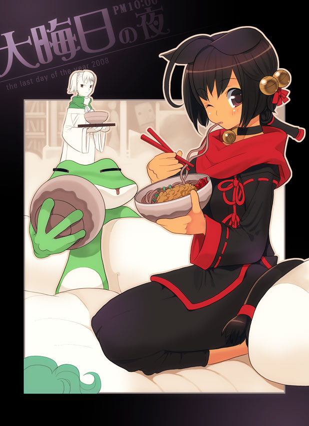 koizumi itsuki, koizumi itsuki (female), kyon, kyonko, suzumiya haruhi no yuuutsu, lowres, 00s, 2girls, chibi, genderswap, genderswap (mtf), kneehighs, multiple girls, ponytail, school uniform, serafuku, socks