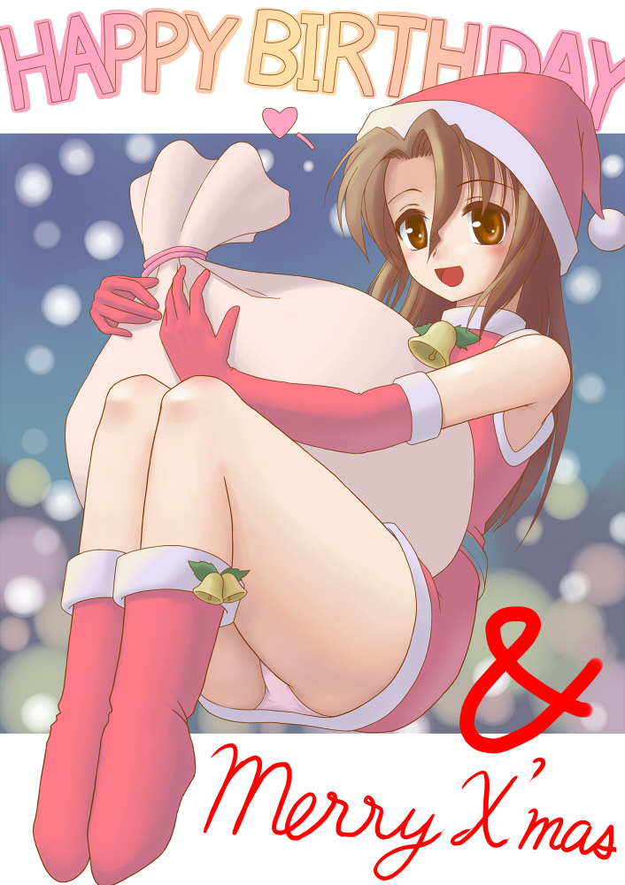 00s1girlbellblushbrown eyesbrown hairchristmaselbow glovesfemale focusgloveshatopen mouthpantiesred glovessacksanta costumesanta hatsmilesolounderwear