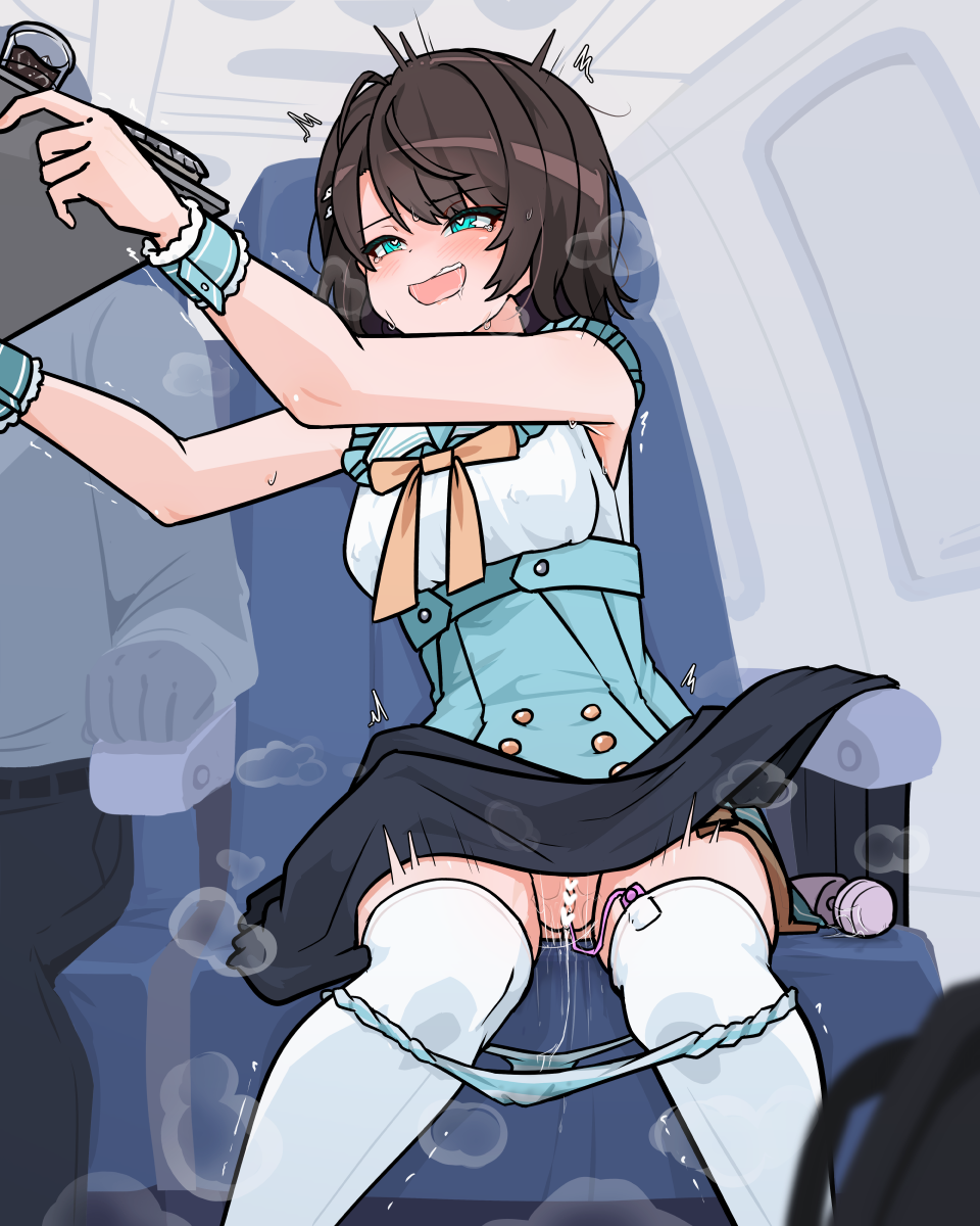 1boy1girlblack hairblue wrist cuffscensoredcontrollerheartheart censorheart-shaped pupilshitachi magic wandholdingholding trayopen mouthpantiespanty pullpussypussy juiceremote controlsex toyshort hairsleevelesssolo focussymbol-shaped pupilsthighhighstrayunderwearvibratorvibrator in thighhighsvirtual youtuberwhite thighhighswrist cuffs