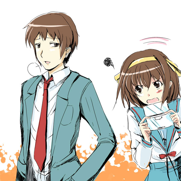 00s1boy1girlangrybrown eyesbrown hairhairbandhandheld game consolenintendo dsschool uniformserafukushort hairsigh
