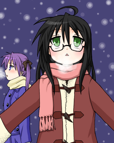 sikorsky, tokiha mai, my-otome, 1girl, abstract background, cooking pot, crossover, female focus, heterochromia, holding, holding cooking pot, ladle, orange shirt, parody, scarf, shirt, solo