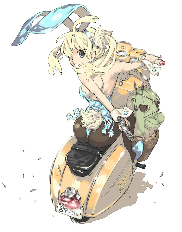sigama, sigma (artist), silver hair, 1girl, black eyes, bodysuit, close-quarters combat, cyborg, female focus, gun, knife, reverse grip, short hair, solo, weapon