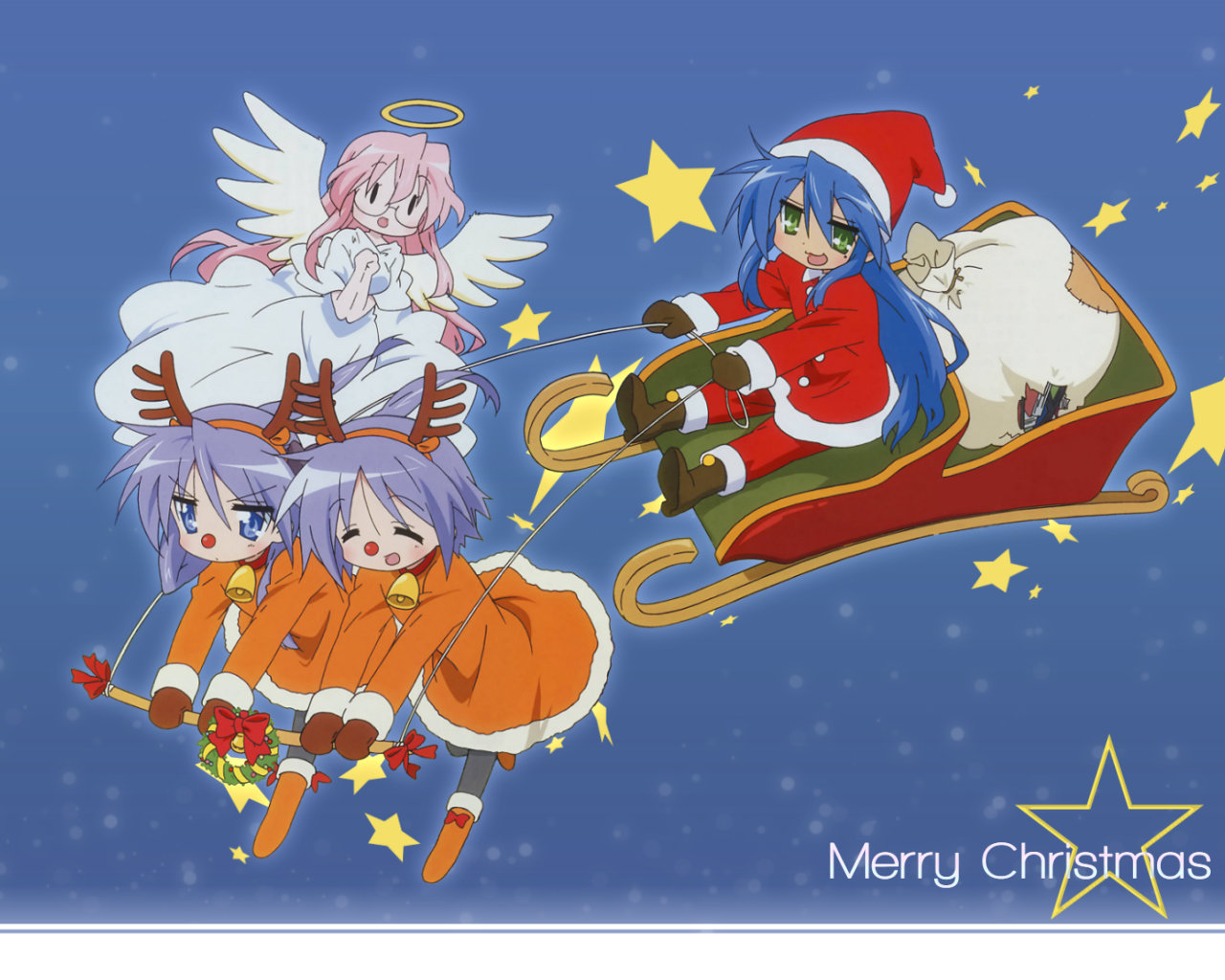 kimineri, chen, cirno, hakurei reimu, izayoi sakuya, kirisame marisa, konpaku youmu, moriya suwako, patchouli knowledge, remilia scarlet, yakumo ran, lucky star, touhou, silver hair, bad id, bad pixiv id, derivative work, 6+girls, animal ears, blonde hair, blue eyes, blue hair, bow, braid, brown eyes, brown hair, cat ears, cat girl, closed eyes, female focus, hair bow, hairband, hat, mob cap, multiple girls, one eye closed, parody, purple eyes, purple hair, red eyes, wings, wink, witch, witch hat, yellow eyes