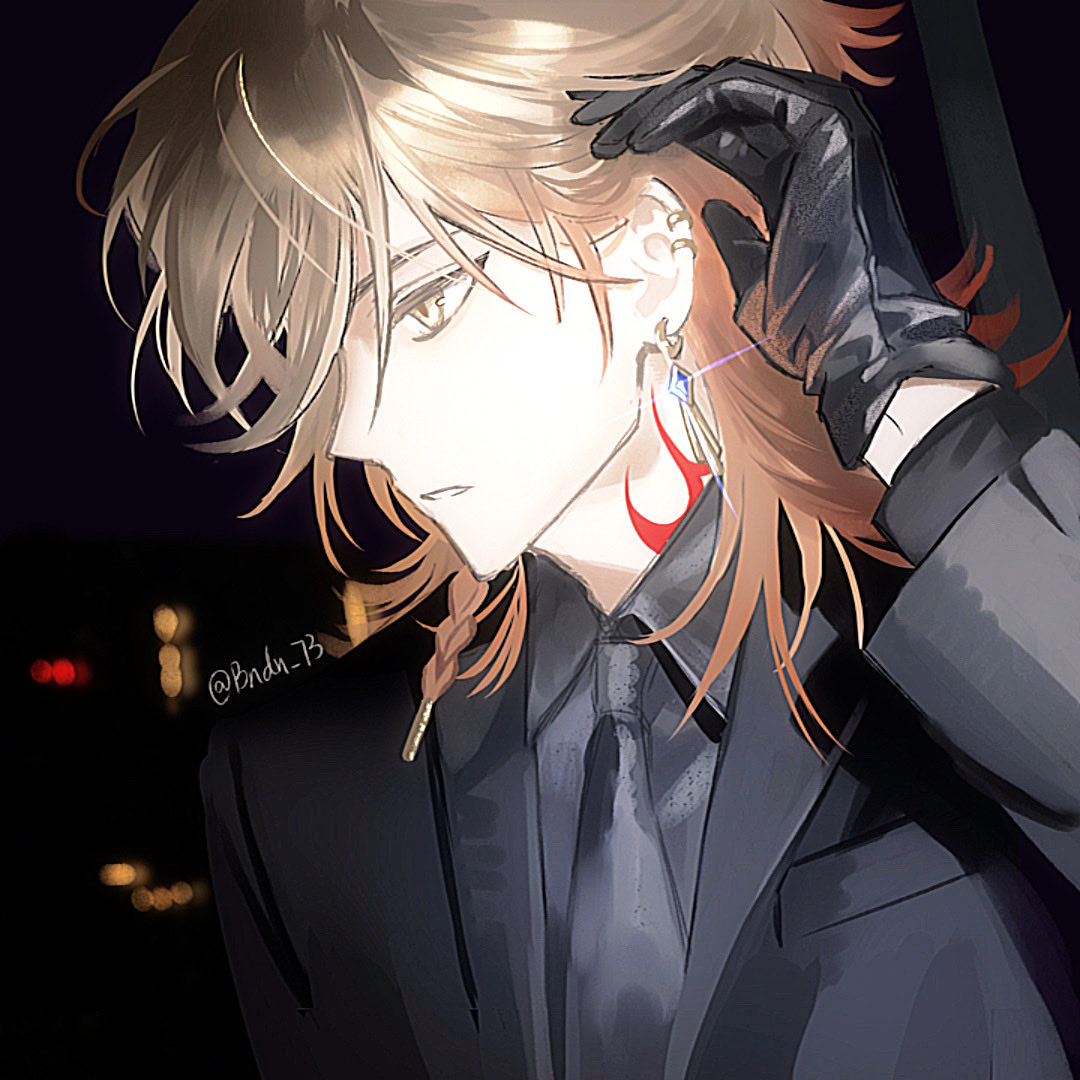 1boyadjusting hairblack glovesblack jacketblack necktieblack shirtblonde hairbraidcollared shirtearringsglovesgold earringsgradient hairjacketjewelrymale focusmedium hairmulticolored hairneck tattoonecktieprofilered hairred tattooshirtside braidsolotattootwitter usernameyellow eyes