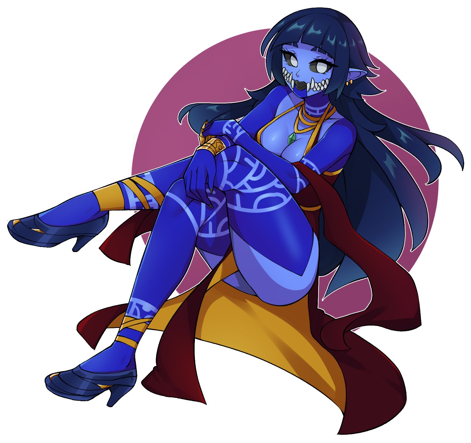 selvish94, rosalina, mario (series), nintendo, super mario galaxy, highres, 1girl, artist name, bare shoulders, blonde hair, blue dress, dress, earrings, grin, hair over one eye, jewelry, lips, long hair, looking at viewer, one eye covered, pink lips, simple background, smile, solo, strapless, strapless dress, white background