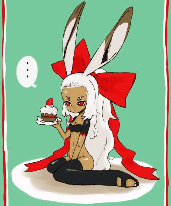 00s1girlanimal earsbottomlessbowbreastscakechibicleavagecrop topdark skindark-skinned femalefeetfemale focusfoodfruithair bowlong hairnail polishpastryplaterabbit earsred eyesribbonsittingsmall breastssolostrawberrythighhighstoeless legwearvery long hairvierawhite hair