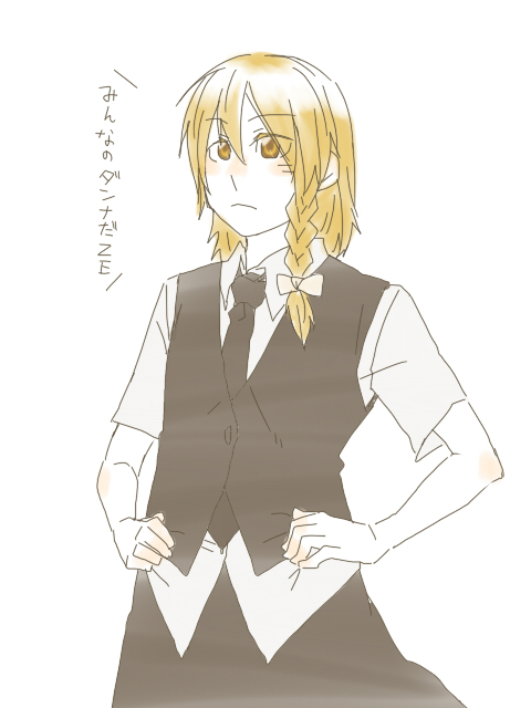 1girlblonde hairbraidfemale focusnecktiepartially coloredsimple backgroundskirtsolovestwhite backgroundyellow eyes