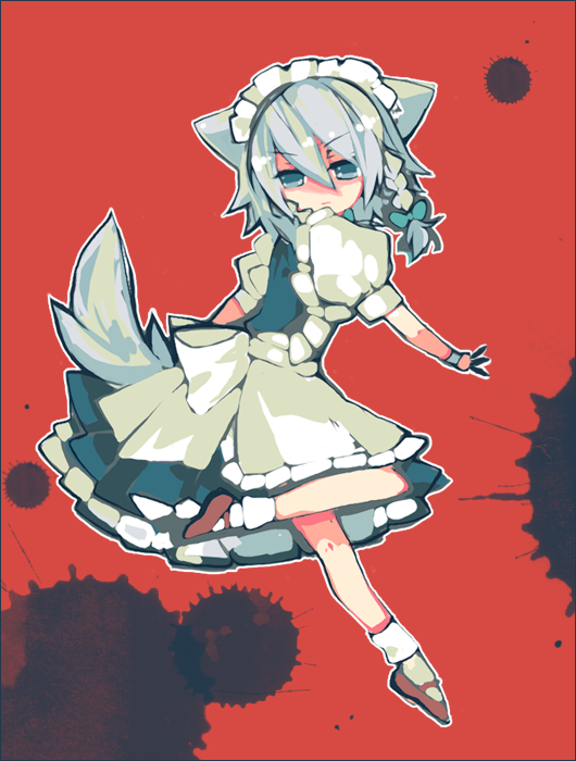 1girlanimal earsapronblue eyesdog earsdog tailfemale focushairbandkemonomimi modemaidmaid apronribbonshort hairsolotail