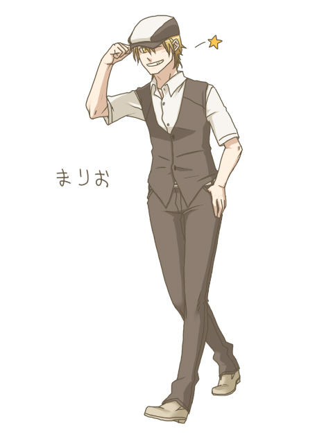 1boyblonde hairgenderswapgenderswap (ftm)hatmale focusone eye closedpantsshort hairsolovestwinkyellow eyes