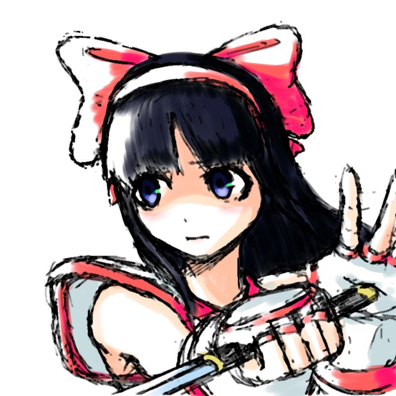 1girlainu clothesblack hairblue eyesclenched handfighting stancefingerless glovesgloveshair ribbonlong hairoutstretched armsribbonseriousweapon