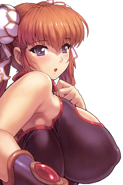 blue eyesblushbraceletbreastsbun covercovered erect nipplesdouble bunhuge breastsjewelryopen mouthorange hairsolotwintails