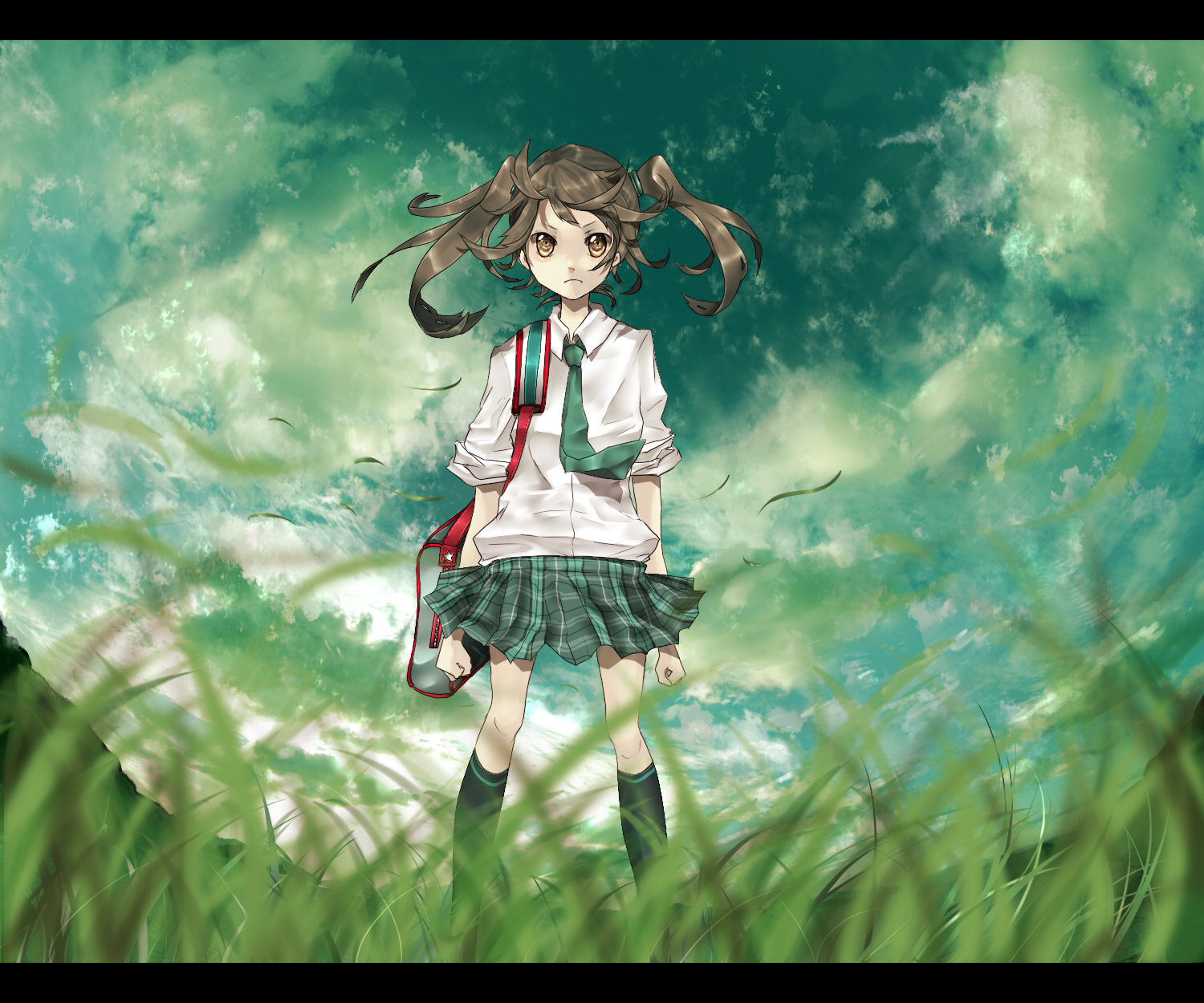 shishinon, hiro (hidamari sketch), miyako (hidamari sketch), hidamari sketch, translation request, > <, 00s, blonde hair, closed eyes, double bun, hair bun, red hair, school uniform, yamabuki high school uniform