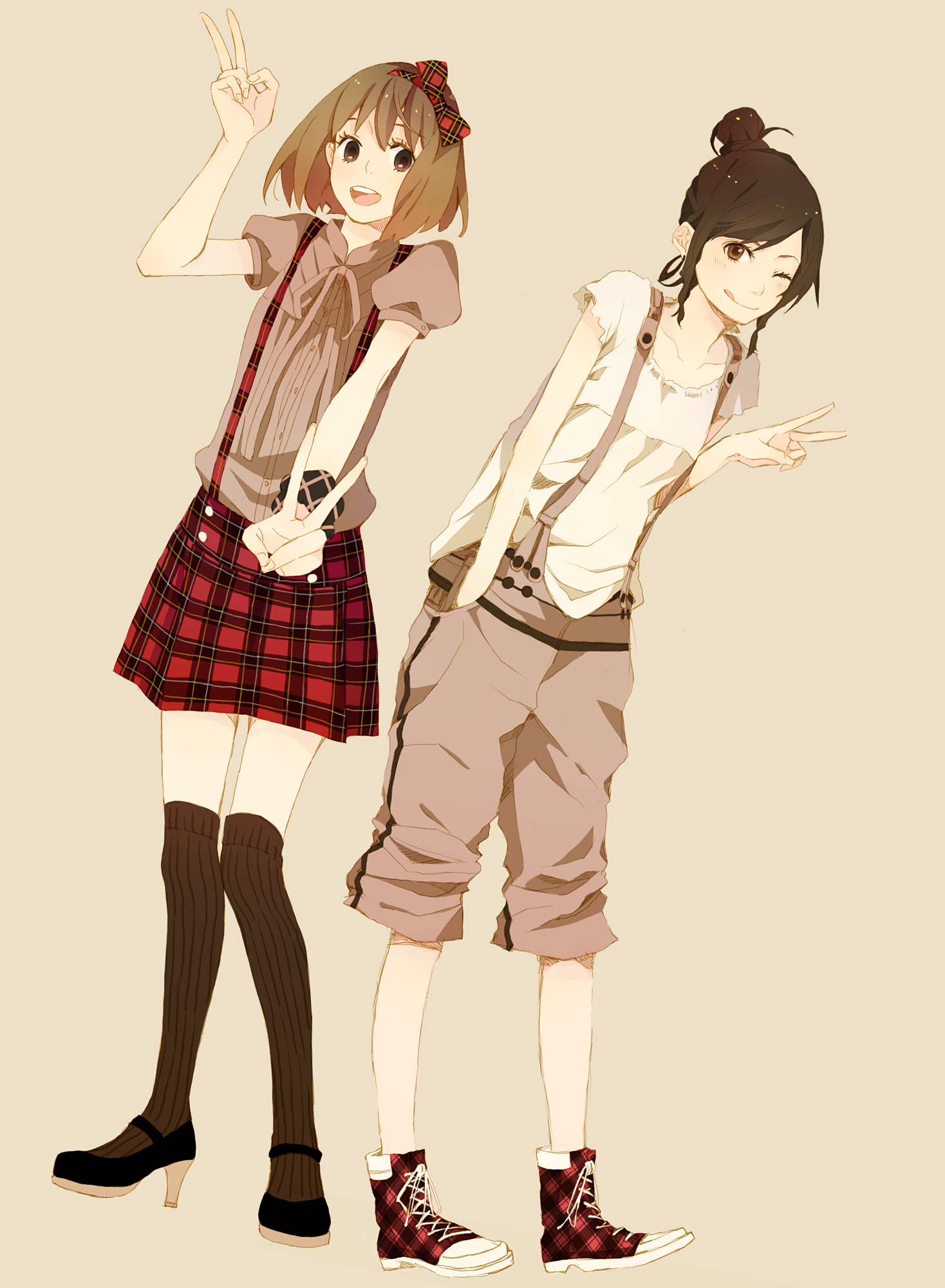 :q2girlsblack socksblousebowbrown socksdateddouble vfashionfull bodygrey shirthair bowhair bunhigh heelshigh topskneehighsmary janesmultiple girlsone eye closedoverallspatterned legwearpinstripe patternplaid clothesplaid footwearplaid shoesplaid skirtponytailshirtshoessimple backgroundsingle hair bunskirtsneakerssocksstandingstreetwearstriped clothesstriped thighhighssuspender skirtsuspendersteeththighhighstonguetongue outupper teeth onlyvvertical-striped clothesvertical-striped thighhighswhite shirtwinkwristband