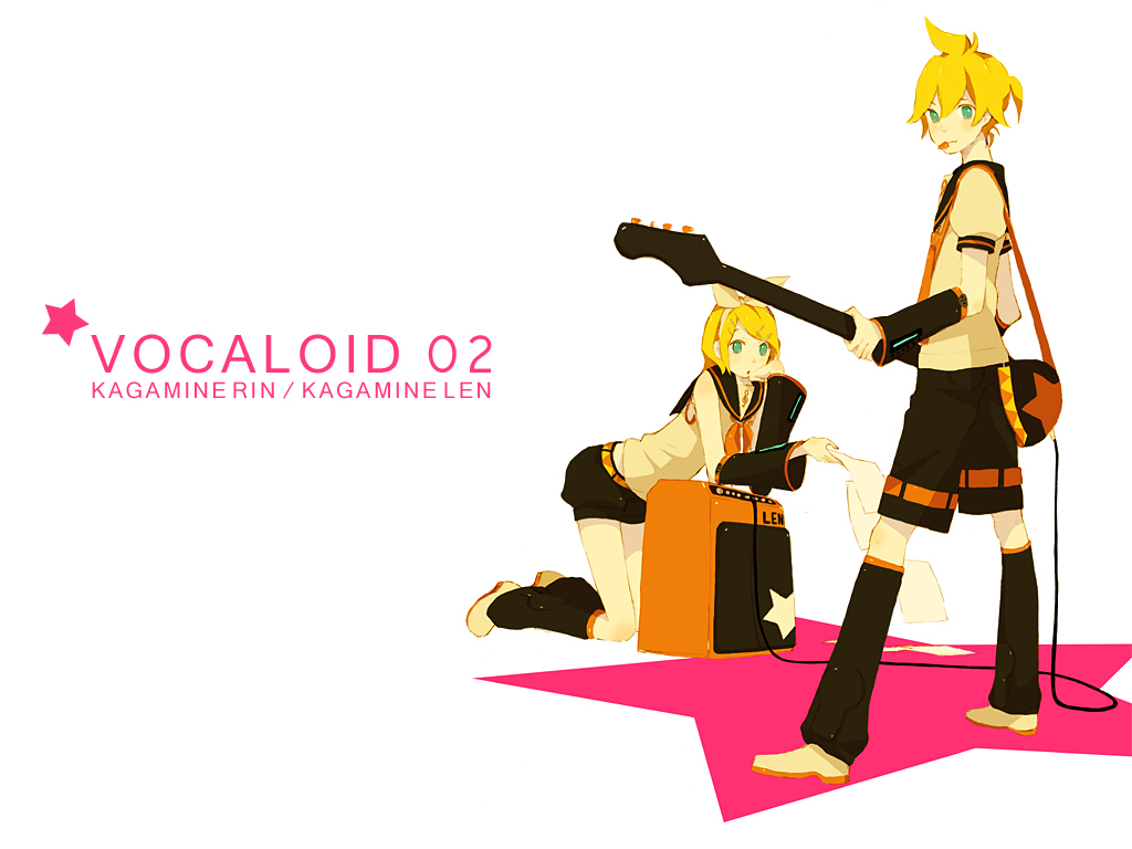 1boy1girlblonde hairbrother and sisterdetached sleevesguitarinstrumentshort hairshortssiblingstwins