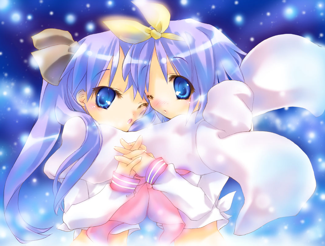 00sblue eyesholding handslong hairpurple hairscarfschool uniformserafukushared clothesshared scarfshort hairsiblingssisterssnowtwinstwintails