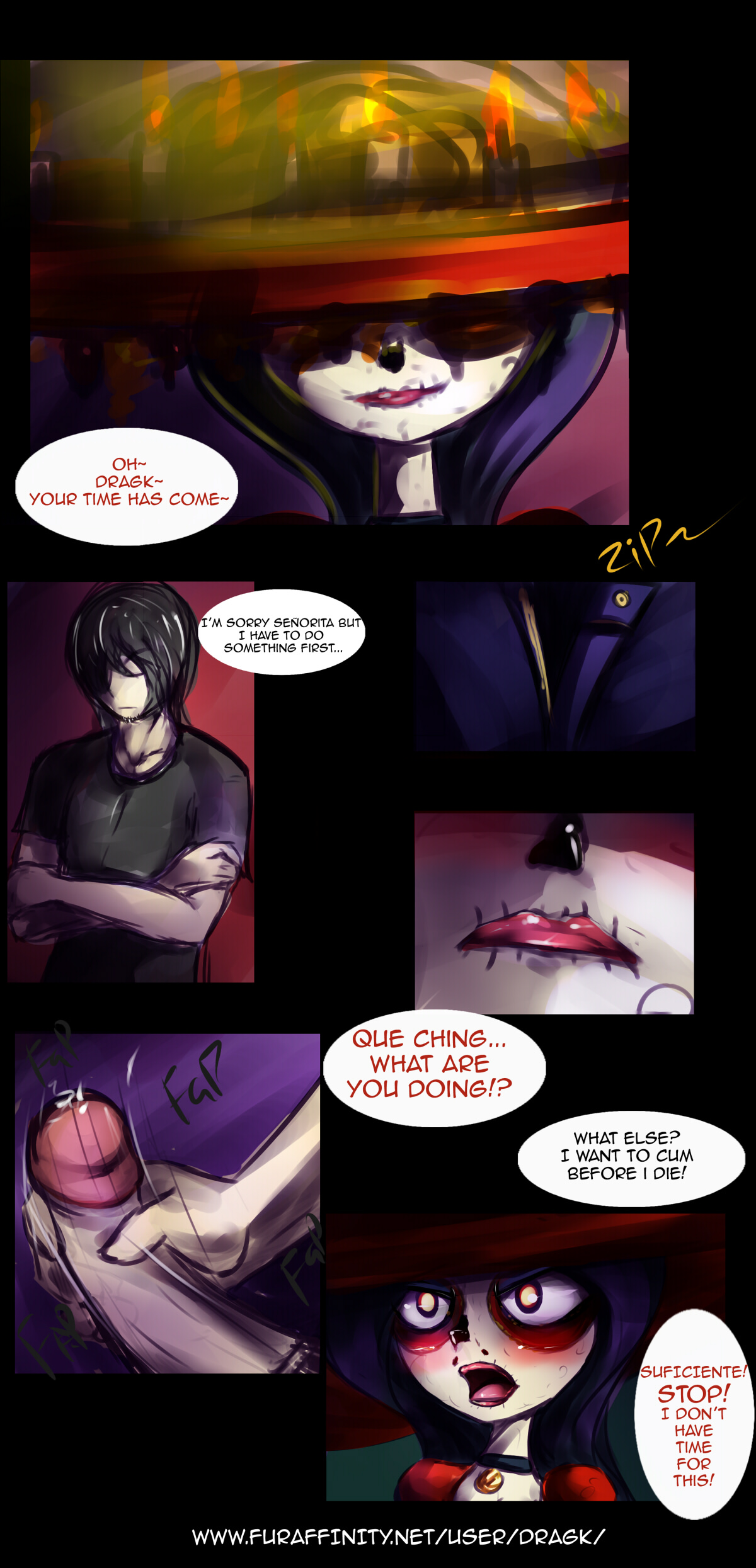 artist self-insertblack hairblushboneclothingcollarfemaleFlag for Deletionmalemasturbationnecklaceopen mouthpenisred dressskeletonsombrerotongueyellow eyes