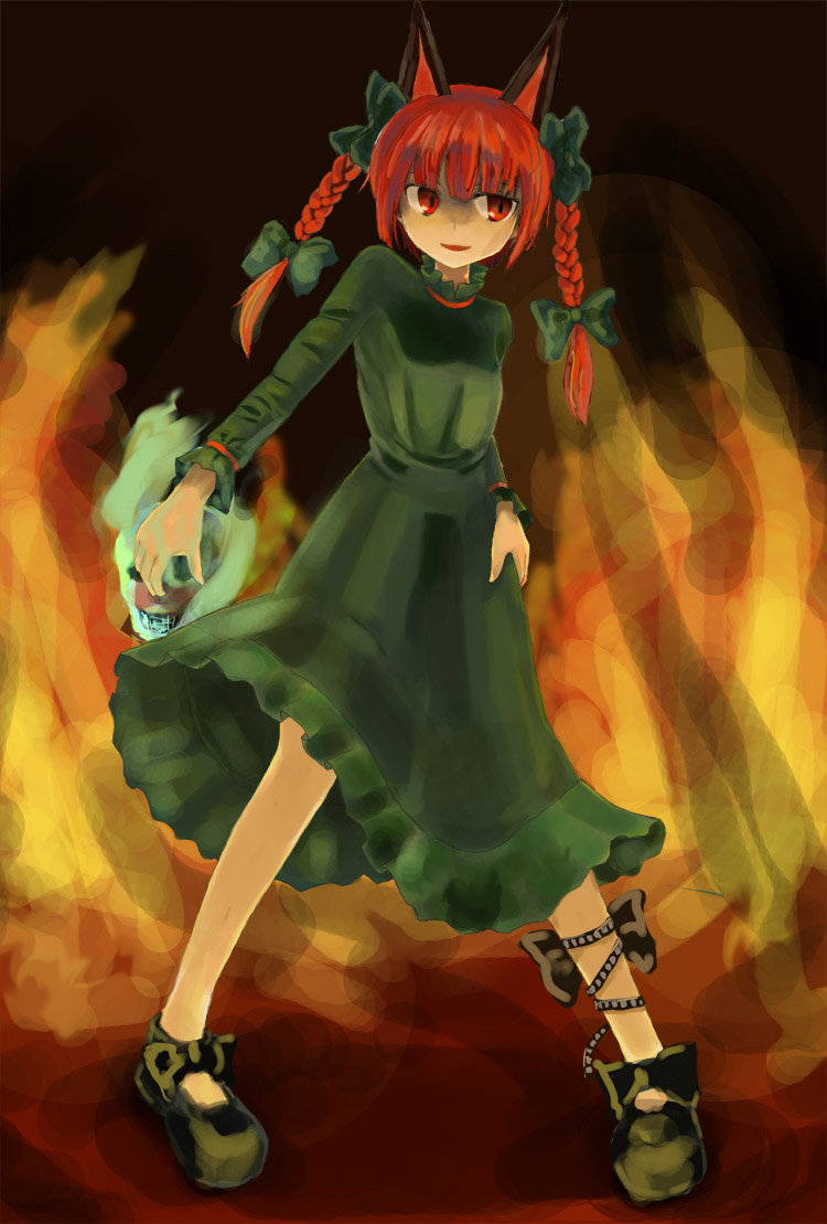 1girlanimal earsbraidcat earscat girlcat taildaajifemale focusfireribbonskullsolotailtwin braids