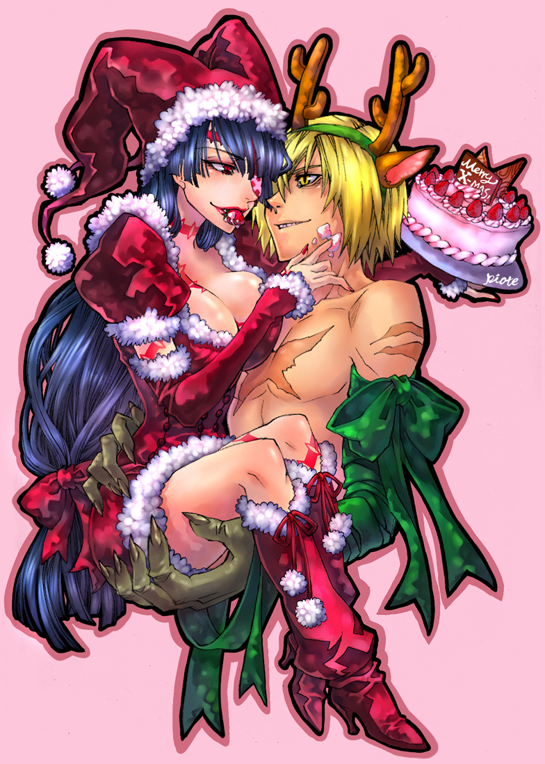 00s1boy1girlblue hairbootsbowbreastscakecarryingchristmascleavagecoupleeyepatchfoodfruithatheterojester caplong hairlow-tied long hairpastrypink backgroundred eyessanta costumesanta hatscorpion tailstrawberrytailtattootopless male