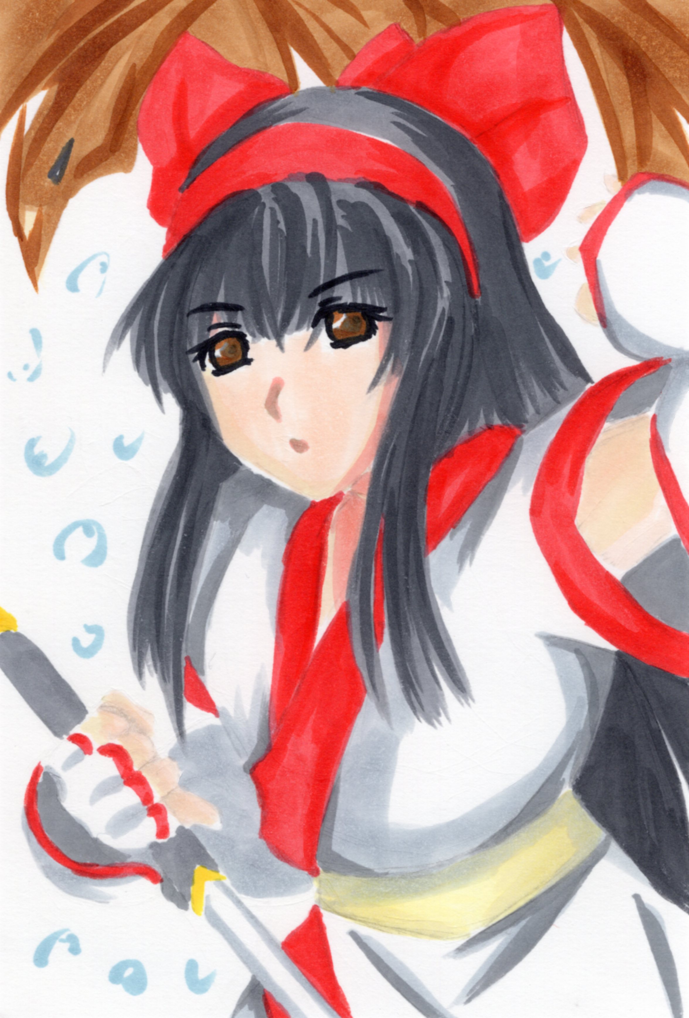 aegis asu, rixia mao, ao no kiseki, eiyuu densetsu, zero no kiseki, commentary, english commentary, highres, 1girl, abs, arm behind head, bow, double-parted bangs, hair between eyes, hair bow, looking at viewer, midriff, muscular, muscular female, navel, purple eyes, purple hair, scar, scar on arm, scar on chest, scar on stomach, smile, solo, sports bra, twitter username, upper body