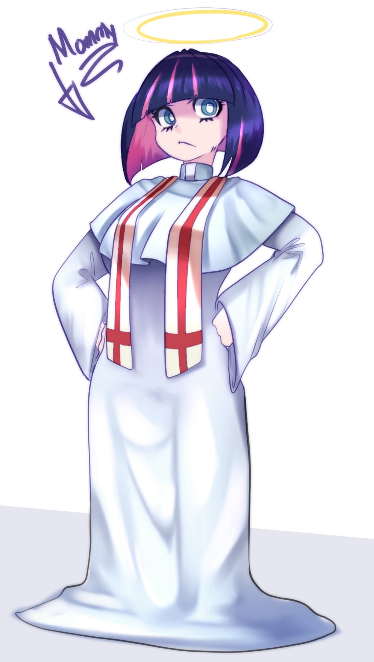 urachi, raiden shogun, genshin impact, highres, 1girl, armor, asymmetrical sleeves, blunt bangs, braid, breasts, bridal gauntlets, cleavage, clothing cutout, gradient hair, hair intakes, huge breasts, japanese armor, japanese clothes, kimono, large breasts, light blush, long braid, long hair, multicolored hair, neck ribbon, no mole, purple eyes, purple hair, purple kimono, purple nails, red ribbon, red sash, ribbon, sash, shoulder armor, shoulder cutout, single braid, standing, uneven sleeves, upper body