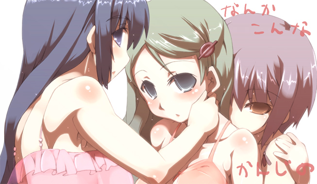 miyama amehiko, original, 1girl, breasts, brown hair, cleft of venus, cowboy shot, female focus, nude, orange eyes, pussy, solo, uncensored