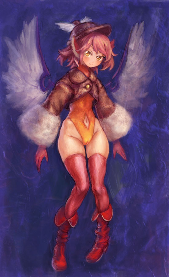 okama, pumpkin-chan, food girls, highres, cane, hat, jack-o'-lantern, orange hair, pants, pointy ears, pumpkin, solo, yellow eyes