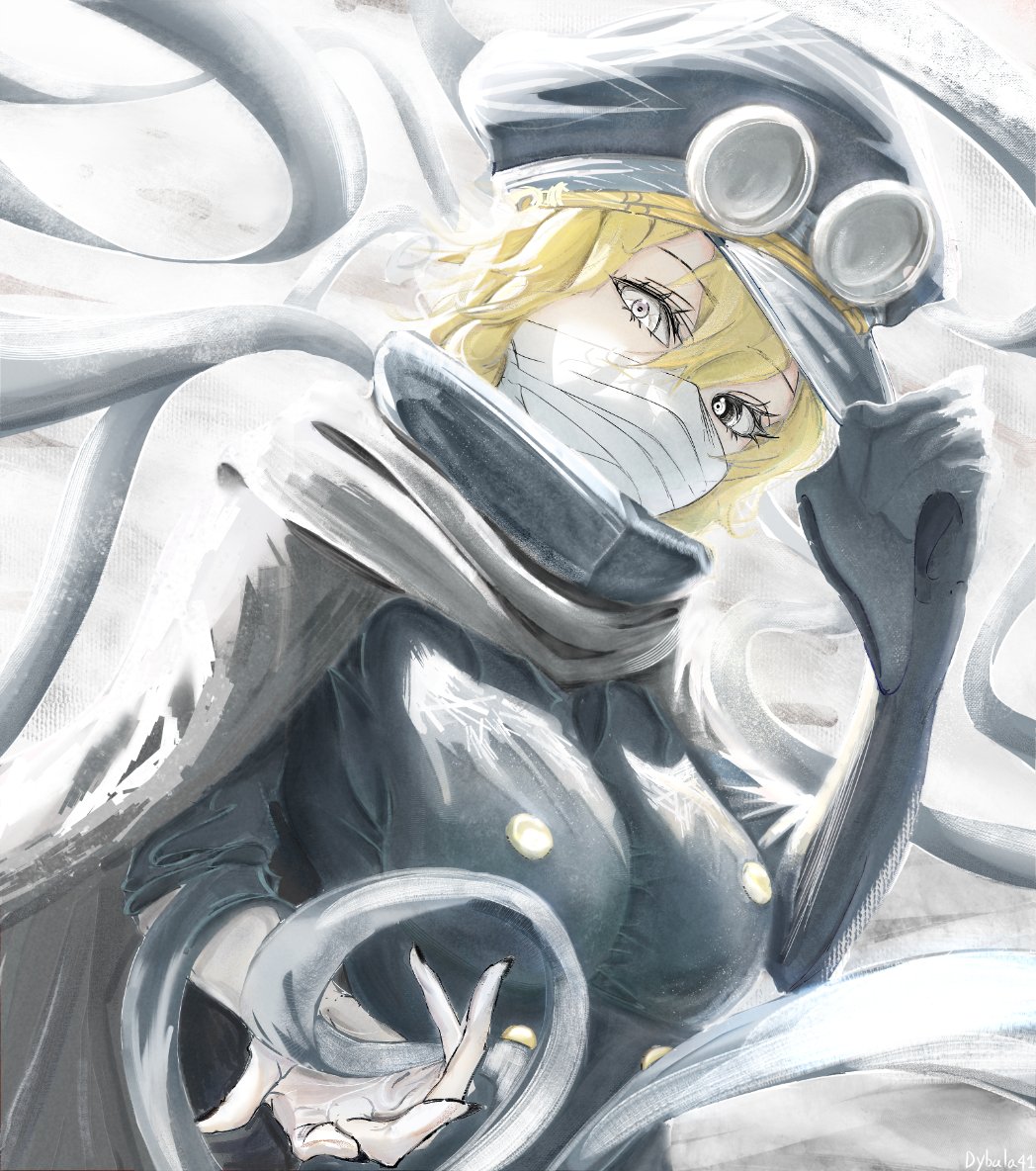 1girlblonde hairdybala41gakurangogglesgoggles on headwearicemaskmulticolored eyesschool uniformshort hairwinter clothes