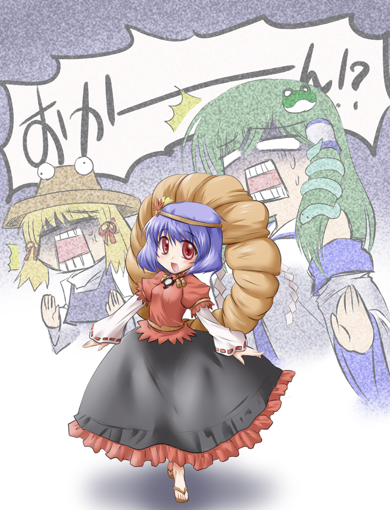 3girlsaged downblonde hairfemale focusgreen hairhairbandhatmultiple girlspurple hairred eyesribbonshort hairskirtsurprised