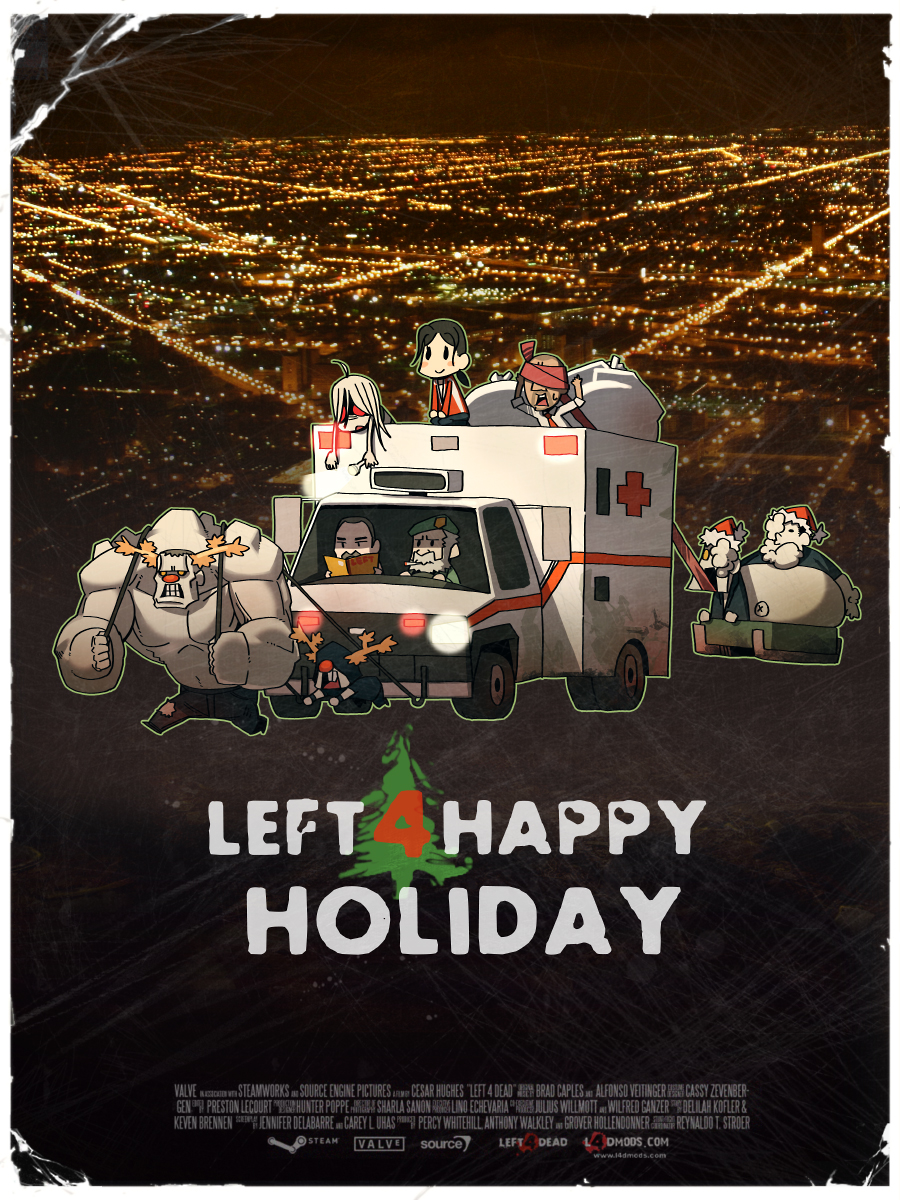 2girls6+boysahogeambulancebeardchibichristmascitycrossfacial hairhatmovie postermultiple boysmultiple girlsnightparodyposter (medium)red crossreindeersanta hatsledzombie