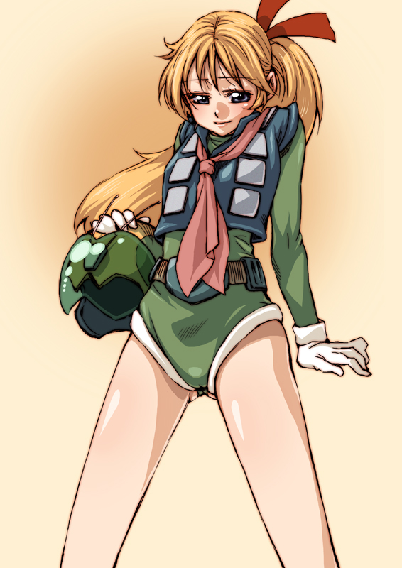 1970s (style)1girlascotblonde hairblue eyesfemale focushelmetlegslong hairoldschoolponytailretro artstylesmilesolovest