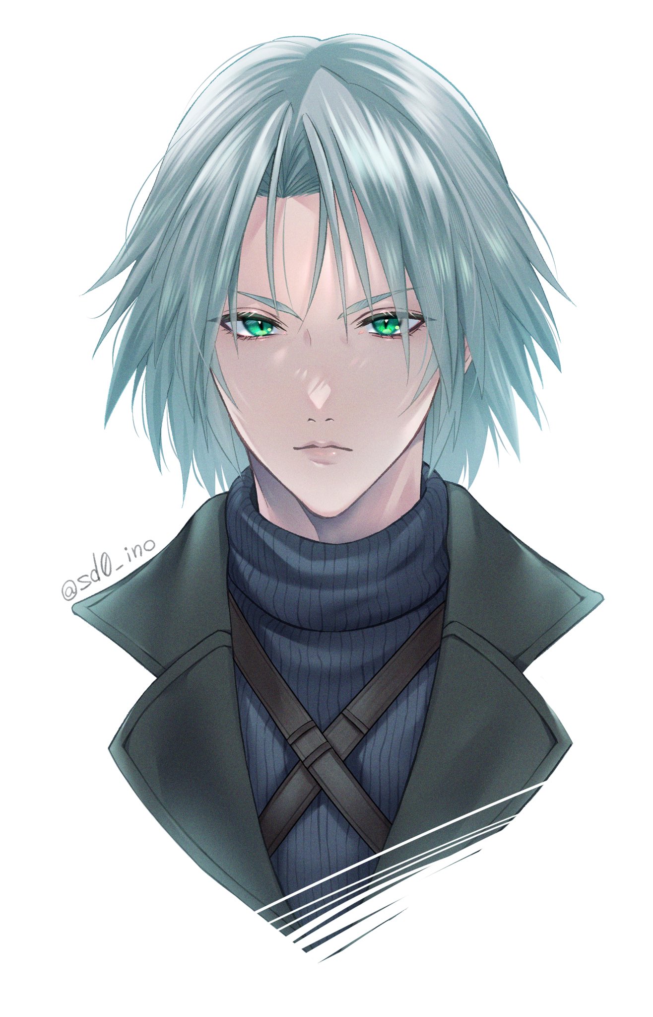 1boyaged downblack jacketblue sweaterchest strapclosed mouthcropped torsogreen eyesgrey hairjacketlooking at viewermale focusparted bangsportraitribbed sweatersd0 inoshort hairsolostraight-onsweaterturtleneckturtleneck sweatertwitter usernameupper bodywhite background