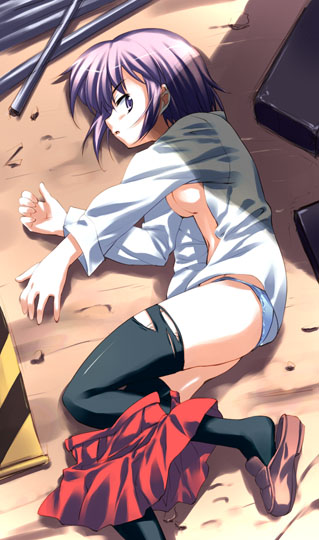 blousebrown shoesclothes pulldayopen clothesopen shirtpantiesschool uniformshirtshoe dangleshoesskirtskirt pullsolothighhighstorn clothesunderwearwhite shirt